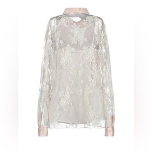 Details: ruched shirt, organza, lace, ruffles, multicolor, classic collar, long sleeves, button fastenings, no pockets,