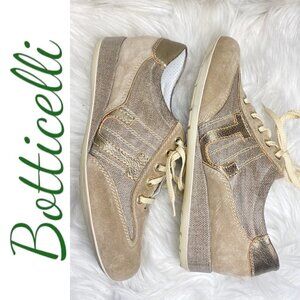 BOTTICELLI Genuine Suede Lace Up Wedge Sneakers Gold Metallic, Size 37