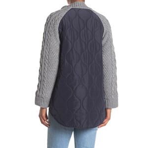* Faux fur front; cable knit sleeves; quilted, woven back