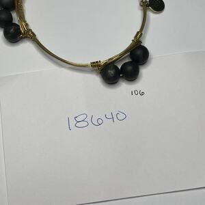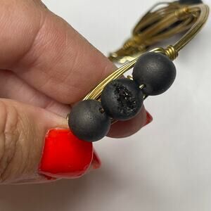 BOURBON & BOWETIES gold tone bracelet bangle 3 black beads jewelry wire wrapped