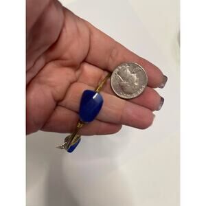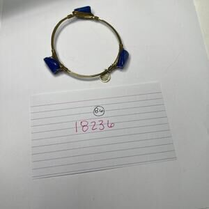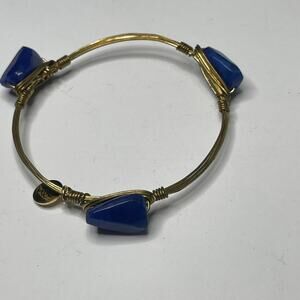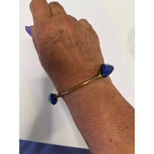 BOURBON & BOWETIES gold tone bracelet bangle faceted blue agate signed jewelry