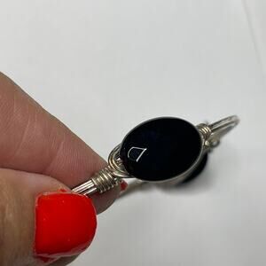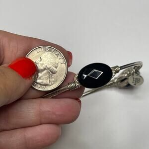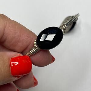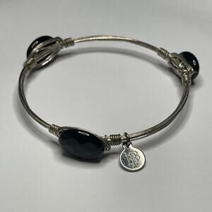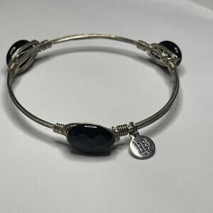 BOURBON & BOWETIES silver tone faceted black bracelet bangle jewelry wire wrap