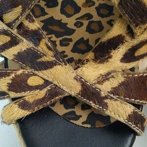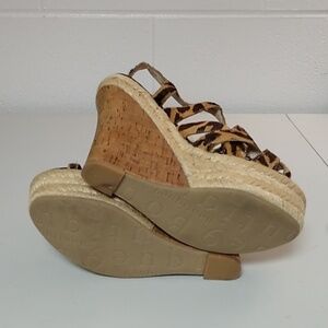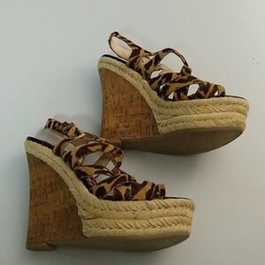 BOUTIQUE 9 LEOPARD PRINT FUR PLATFORM WEDGE SANDAL WITH CORK HEEL,