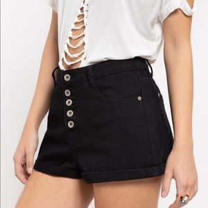 BOUTIQUE BLACK HIGH RISE BUTTON FLY DENIM SHORTS