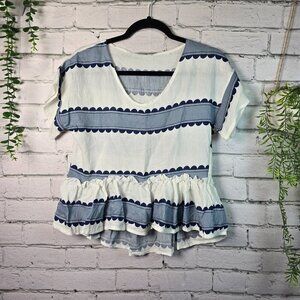 BOUTIQUE BOLD STRIPE CROP TOP RUFFLED HEM BLUE AND WHITE WOMENS SIZE MED