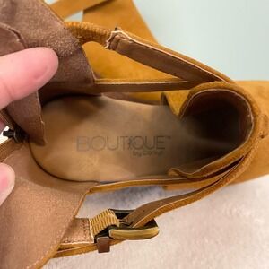 BOUTIQUE BY CORKYS Sandal 9 Leopard Wedge Buckle Suede Leather Open Toe Brown