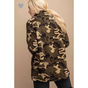 Super soft camouflage Sherpa pullover that’ll be perfect for the winter season! Fits true to size. Quarter zip, loose fitting, long sleeves.