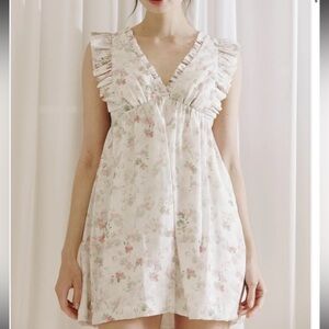 Watercolor cherry blossom print ruffled mini baby doll dress: