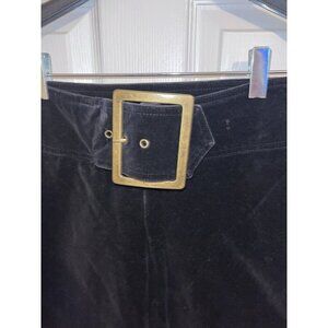 BOUTIQUE EUROPA Black Velvet Wide Waist Band Belt Straight Leg Pants Sz 8