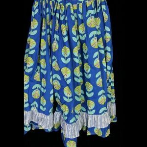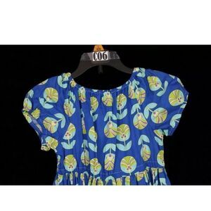 BOUTIQUE HANDMADE GIRLS SZ 8 BLUE RUFFLE FLORAL DRESS ARMPIT TO ARMPIT 13" LENGTH 30" SKU C06