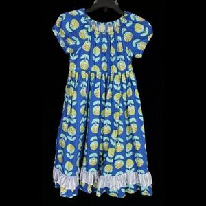 BOUTIQUE HANDMADE GIRLS SZ 8 BLUE RUFFLE FLORAL DR