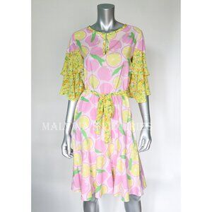 BOUTIQUE MOSCHINO DRESS PINK YELLOW LEMONS FLUTTER SLEEVE BELT sz IT 40 US 6