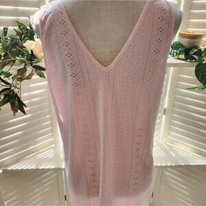 PINK NWOT EYELET LACE V GOLD V NECK BLOUSE MULTIPLE SIZES