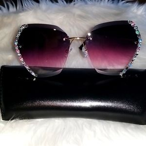 BOUTIQUE 🍏 Purple Gradient Rimless Sunglasses w/ Rhinestones