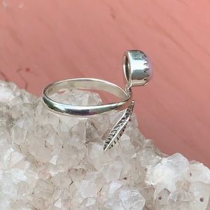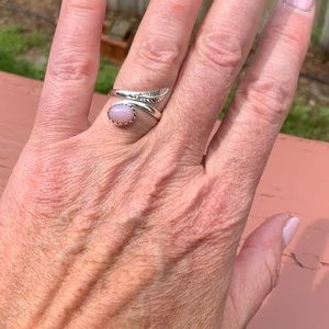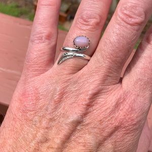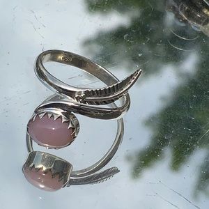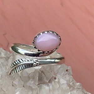 Boutique Rose Quartz 925 Sterling Silver Ring, Size 6. Rose Quartz from Madagascar set in a decorative 925 Sterling Silver Ring with a leaf bypass.