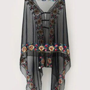 BOUTIQUE SHEER EMBROIDERED SHAWL/PONCHO