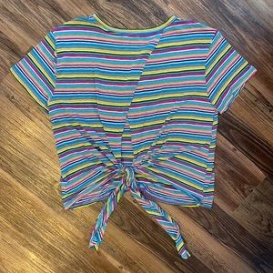 BOUTIQUE Style Multicolored Crop Top Shirt with Open Back that Ties