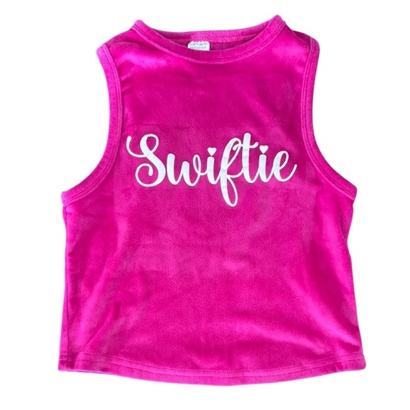 Brighten up your child's wardrobe with this vibrant pink tank top. Perfect for young Swiftie fans, this top combines comfort and style effortlessly. Youth medium, like new!