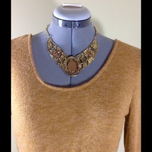 Worn twice. 34 1/2" long from shoulder seam to hemline while on mannequin. Bust darts. Hidden zipper in the back with tie top across the shoulders. Top is 86% wool and 14% acrylic. Contrast is 100% polyester. Lining is 100% polyester. Lace is 100% cotton. NO TRADES. No modeling. REASONABLE offers made using the "offer" icon are appreciated and will be considered.