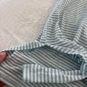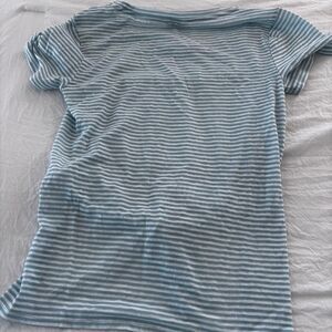 BOUTIQUE XSmall Blue White T Shirt Work Tie Slit Women's Casual Knot Blouse