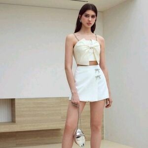 BOW DECOR RHINESTONE STRAP BLOUSE