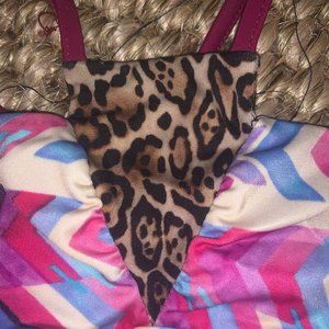 The bottoms are boy-cut. Top has adjustable straps and bottoms tie at side.