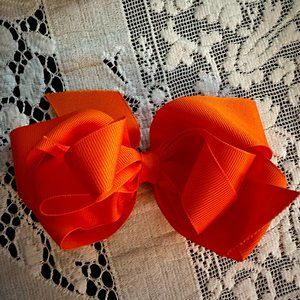 Orange- Girl's Decorative grosgrain ribbon Double Bow- 5 1/2 inches, perfect condition, Great clasp that holds great even in thin hair
