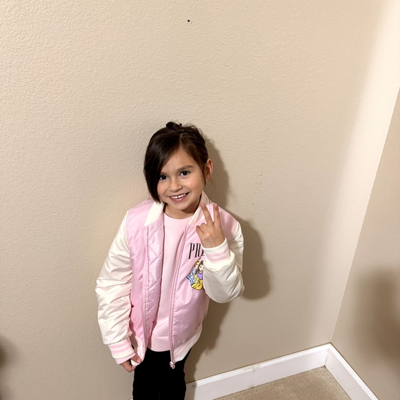 Stylish pink bomber jacket with cream sleeves for girls. Soft, comfortable fabric and a playful embroidered patch. Easy to layer and perfect for everyday wear. Pink color adds a cute, feminine touch.