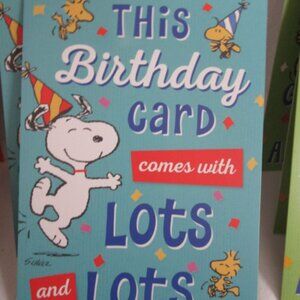 BOX OF 12 DAYSPRING PEANUTS BIRTHDAY CARDS PLUS 9 EXTRAS. Box contains 12 cards, 3 of each design which are shown on the front of the box and also 9 extra Peanuts cards 3 of each design. Total of 21 new cards.