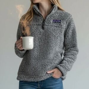 Unisex Gray Sherpa 1/4 Zip Pullover with Embroidered Seattle Logo - Size Small