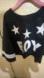 Stylish black crop top featuring bold white stars and lettering. Perfect for a trendy, casual look.