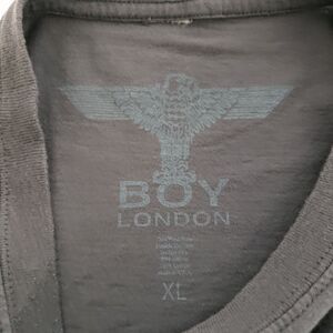 BOY LONDON Mens SIZE L /XL? Gray Short Sleeve LOGO Graphic Shirt FITS LIKE A L
