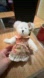 Our little 6" white bear wears a paisley dress with eyelet trim, peach collar and matching bloomers.