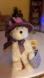 Adorable plush bear wearing a purple hat and bow. Perfect for collectors or as a gift.