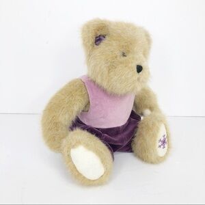 Boyds bear teddy bear with lavender jumpsuit and movable head very good condition very gently preowned