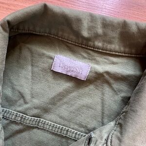 Brand boyish by her. Designed in LA. Oversized cropped green jacket. 98% cotton 2% elastane. Style is called Camden. Color is the last command. Size large. Made in Thailand.