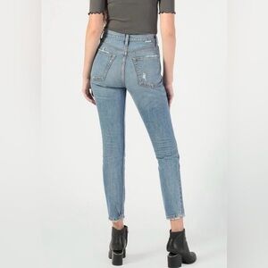 High waist with a skinny silhouette. Button fly closure. Excellent pre-owned condition, no flaws.