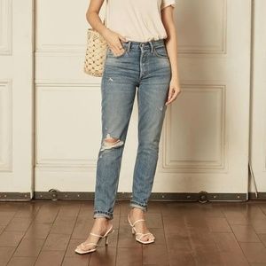 Featuring a classic high-rise skinny silhouette, these Boyish jeans are enhanced with fading and shredding for a favorite-pair feel you'll want to wear with all your weekend looks. The Boyish The Billy High-Rise Skinny is a high waisted rigid skinny jean reminiscent of the most perfect hip hugging vintage denim in a medium eco wash with destruction. Tence jeans that are sustainable and flattering at the same time, these upcycled jeans include GRS certified recycled cotton and REFIBRA™ Technology, reducing its carbon footprint and reducing water usage. 60% Cotton, 40% TENCEL Lyocell