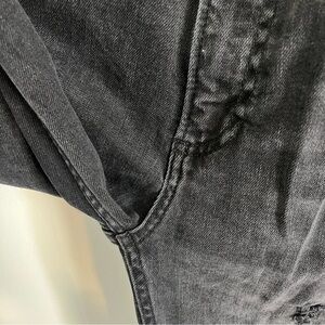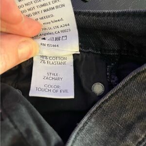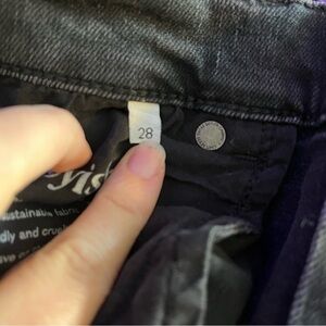 BOYISH Zachary High Rise Distressed Skinny Jeans in "Touch of Evil" - Charcoal Wash With Destruction. Your new classic. The Zachary is a high waisted rigid skinny jean reminiscent of the most perfect hip hugging vintage ripped jean in a charcoal eco wash. This recycled denim jean reduces its carbon footprint and water usage by including recycled cotton.