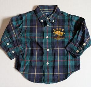 -Ralph Lauren long sleeve green plaid button down (size 9 months)