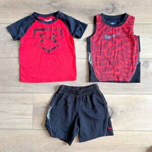1. UNDER ARMOUR 18 months red and black baseball tee.