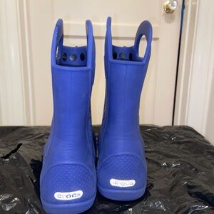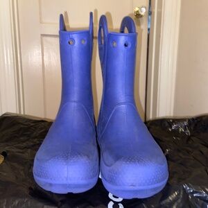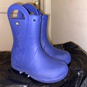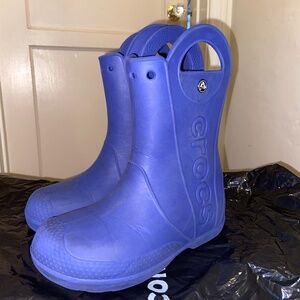 BOY’S CROCS BLUE HANDLE IT RAIN BOOTS SZ J2 PULL ON LIGHTWEIGHT COMFY