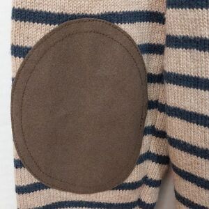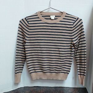 This Crewcuts sweater features a classic crewneck design with a tan base and bold black stripes. Made from a soft knit material, it offers a comfortable fit with ribbed cuffs and hem. The timeless striped pattern adds a touch of elegance to any casual outfit.