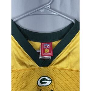 The product is an officially licensed Reebok XL yellow Green Bay Packers jersey featuring player #50, Hawk Jennings. This fan apparel and souvenir item is perfect for young boys who are fans of the NFL team and want to show their support. The high-quality jersey is designed for football enthusiasts and is a must-have for any Green Bay Packers fan looking to represent their favorite team in style.