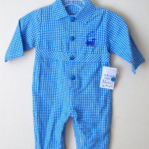 THE PERFECT MEDIUM WEIGHT ONESIE. FULL ZIP ON INNER LEGS FOR EASY ON & OFF AND EASY DIAPER CHANGING. Onesie is 100% Cotton and has Choo Choo Train detail on the front and back pocket, 4 button closure in front & extra button.