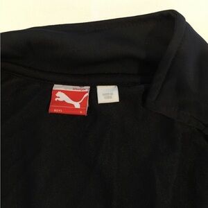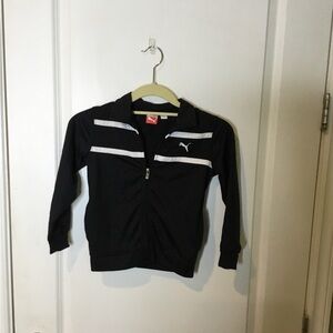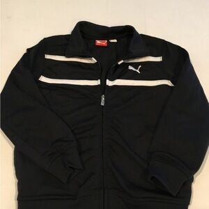 Puma boys zippered jacket with pockets.size 5. Black trimmed in white piping excellent used condition All sales are final.