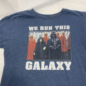 Boys Star Wars Medium Blue We Run This Galaxy Darth Vader Emperor Short Sleeve Tee Shirt Size XL small snag hole on front. See photos
