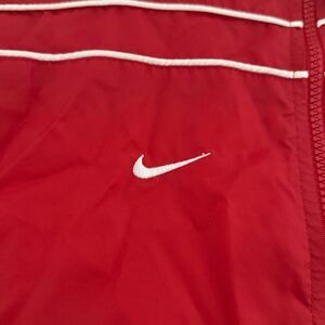 Red lightweight windbreaker jacket with embroidered Badgers and Nike logo and white trim.