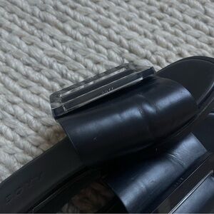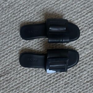 Elegant black slides with a striking oversized buckle. Ideal for casual outings. Great used condition.