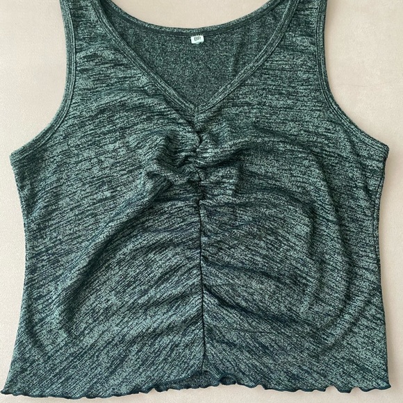 Dark gray and black ruched tank top. Super soft and very flattering. Very good condition.